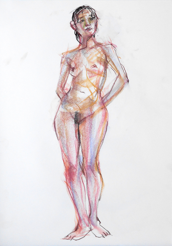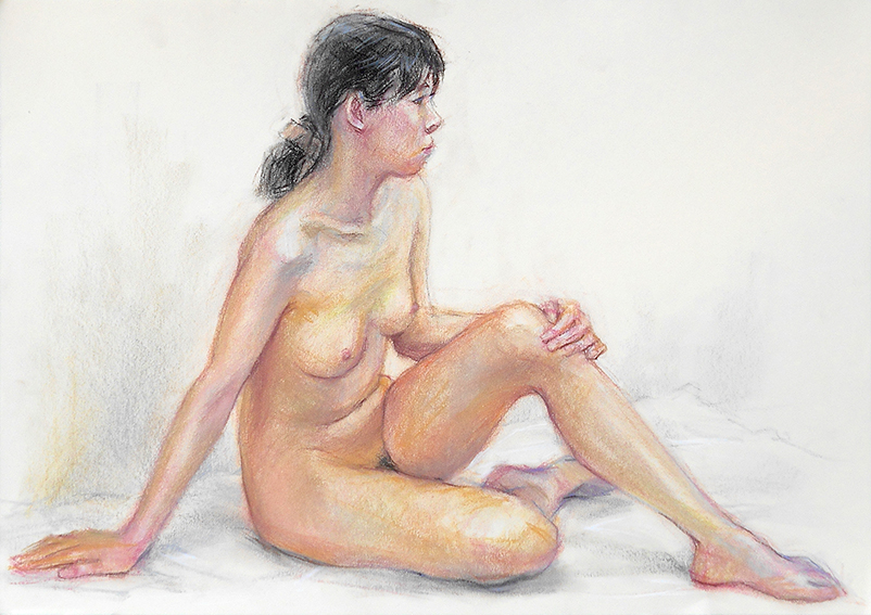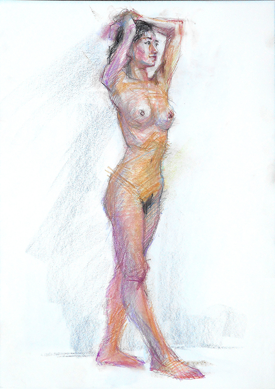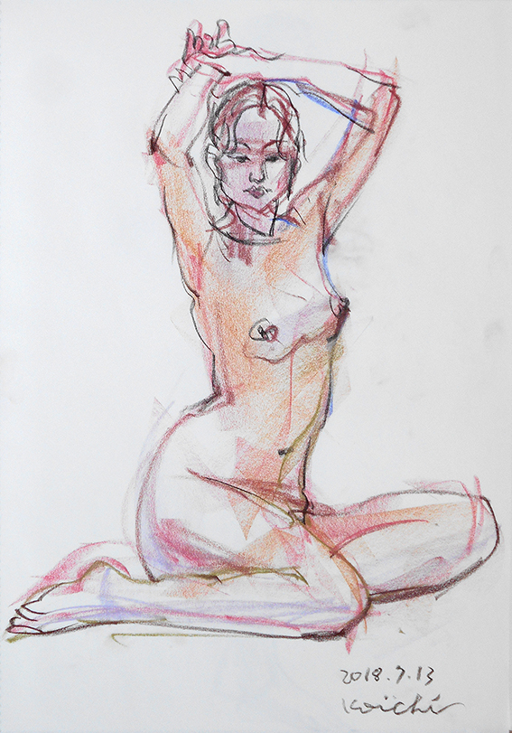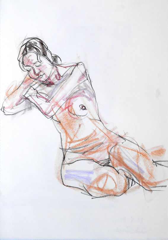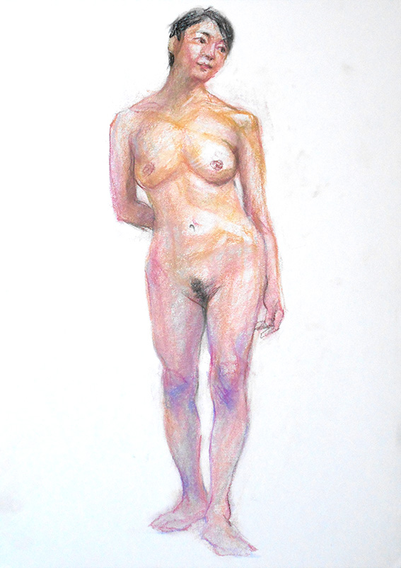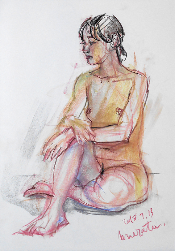 少し場所を移動して、同じポーズを20分で1枚描くが、肌色が綺麗だったのを